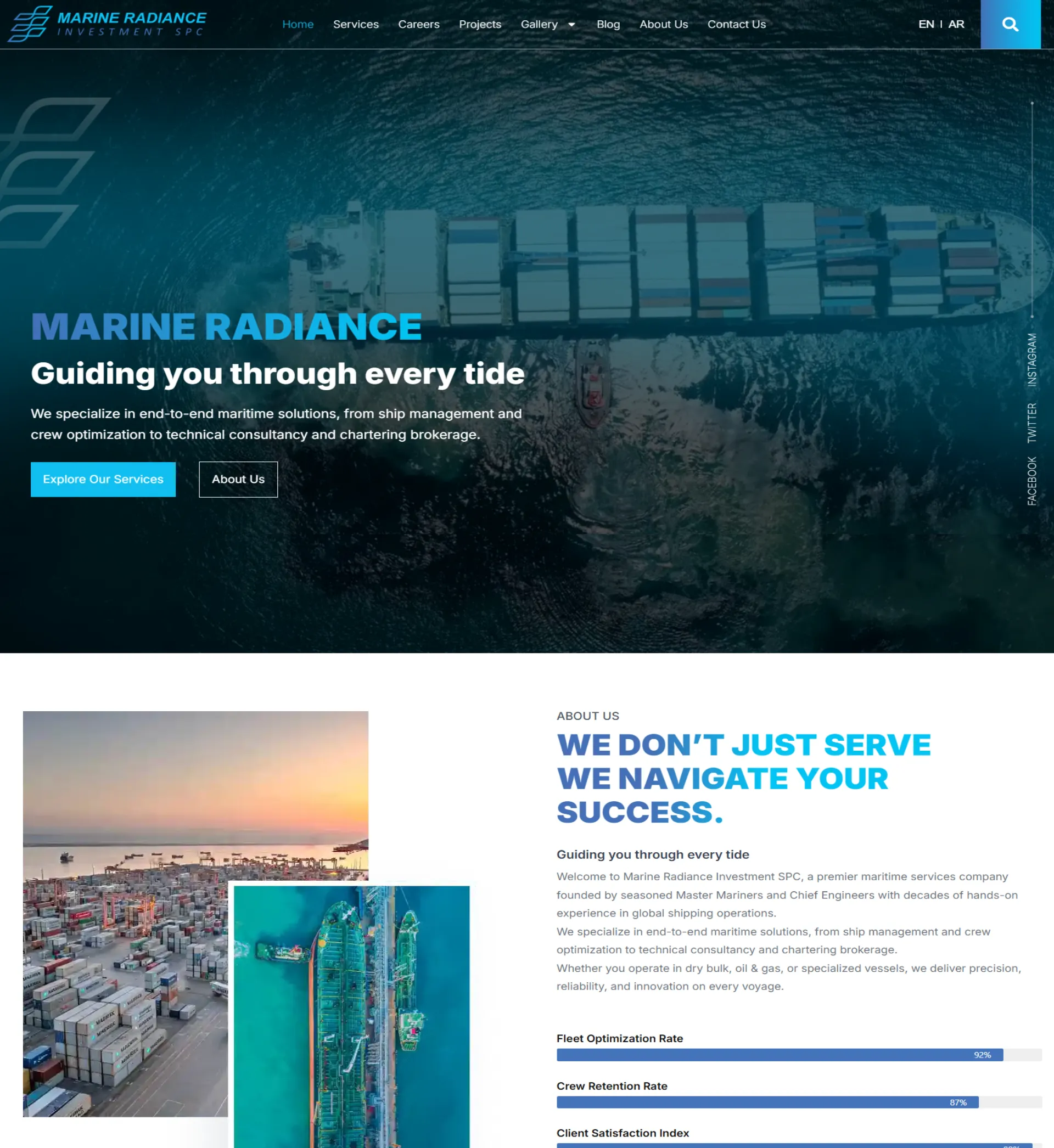 طراحی سایت شرکت MARINE RADIANCE عمان